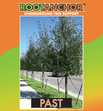 Root Anchor mimics a mature root system, eliminating the need for above-ground T-Posts and guy wires.